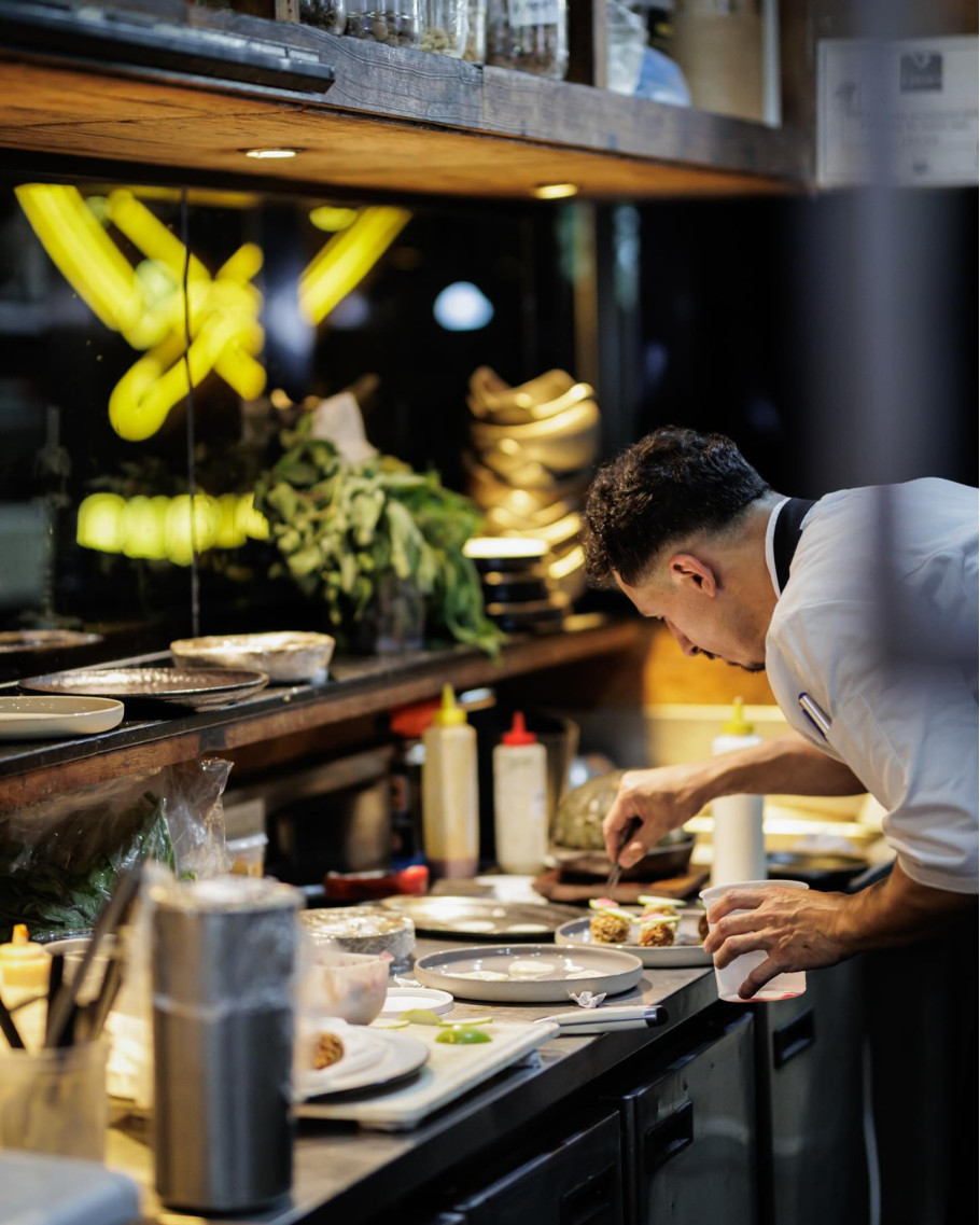 En Palermo, Mishiguene propone una celebración que combina cocina de herencia inmigrante y clima festivo. La experiencia incluye cóctel de bienvenida, snacks, una secuencia de mezze, platos principales y mesa dulce, todo acompañado por vinos de Bodega Catena Zapata.