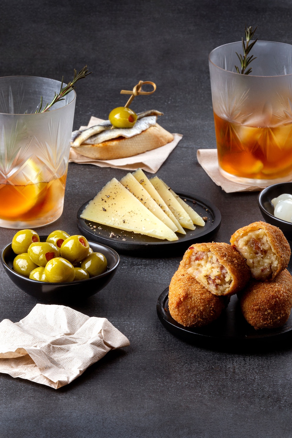 Otro de los grandes hits de la barra es el tapeo. Conservas, quesos, embutidos y platitos pequeños se convierten en el complemento ideal para acompañar cocktails, vermuts o vinos por copa.