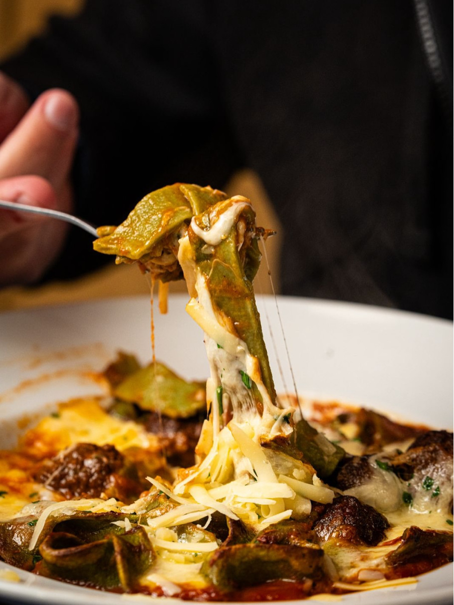 En el apartado de pastas, la propuesta brilla por la calidad de sus ingredientes y la textura artesanal. Desde los ñoquis gratinados con crema de provolone hasta los cavatelli con ragú bolognese, cada plato demuestra el cuidado por el detalle. También destacan los panzotti de espinaca con provolone y nueces en crema de azafrán, y los tagliatelle de espinacas con pomodoro, albóndigas y mozzarella gratinada, una combinación que resume la esencia del lugar: comida simple, generosa y reconfortante.