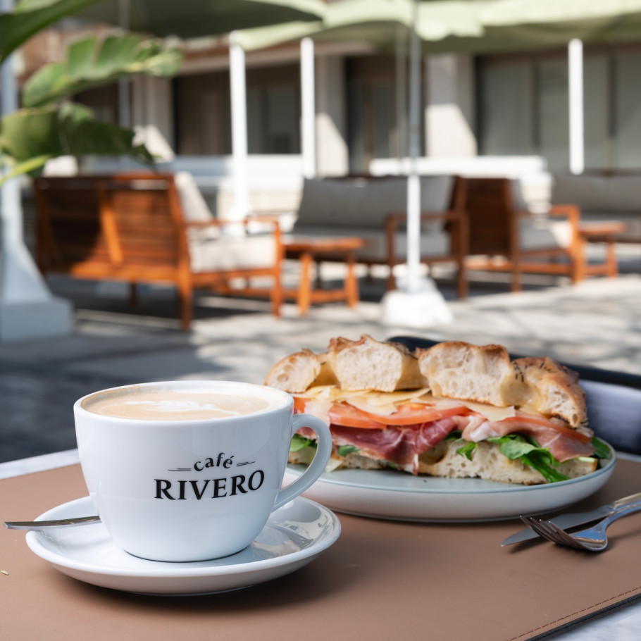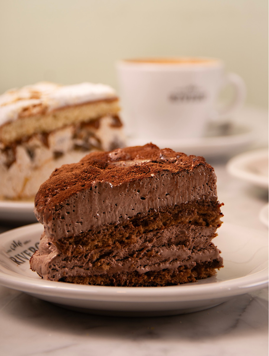 Café Rivero pone el foco en el café de calidad y en una pastelería hecha en casa que entra por los ojos. Hay medialunas clásicas y una variedad de tortas para todos los antojos: Rogel, Marquise con frutos rojos y la siempre presente chocotorta.