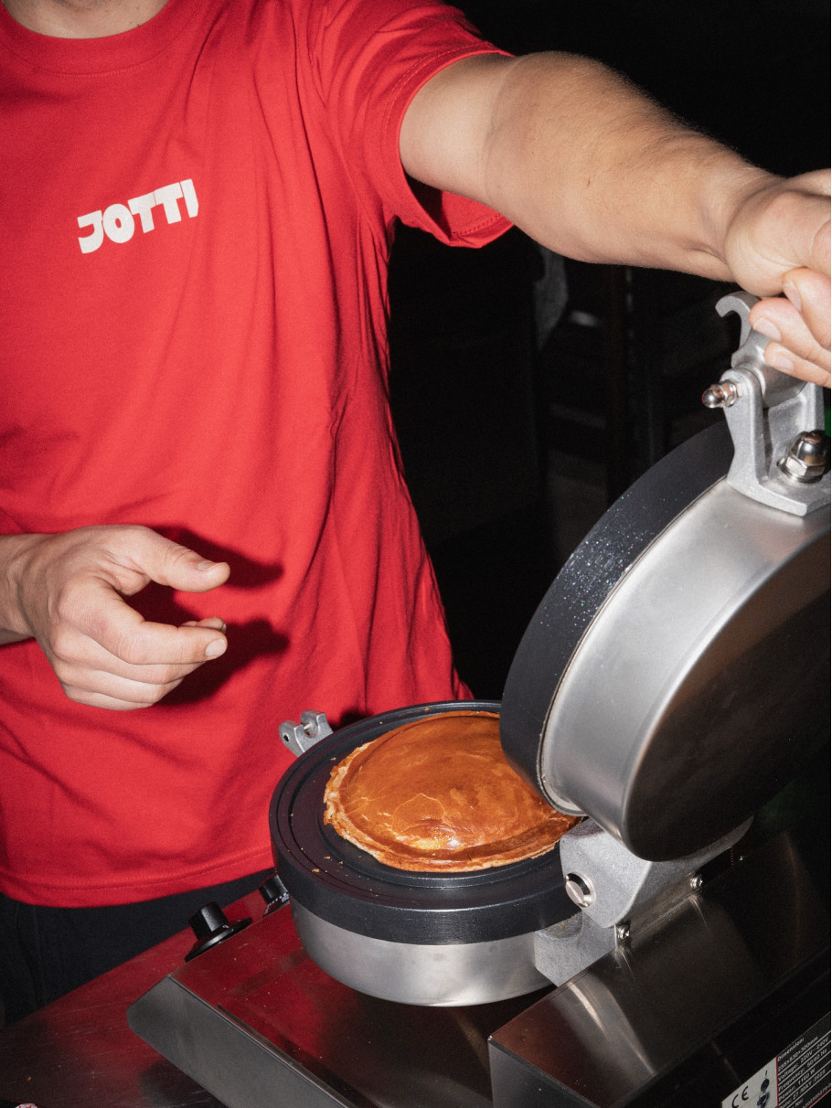 Jotti nació de la creatividad del fotógrafo y referente gastronómico Santiago Olivera, quien durante un viaje a Afganistán en 2023 descubrió un estilo de comida callejera que lo inspiró profundamente. Al regresar a Buenos Aires, compartió su idea con el chef Dante Franco, reconocido por su talento y su enfoque en la cocina de autor.