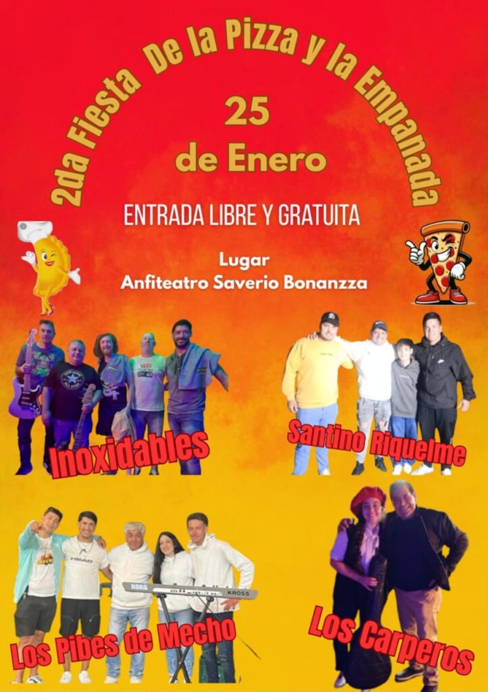 La Fiesta de la Pizza y la Empanada no es solo un evento gastronómico: la música en vivo es parte central de la experiencia. Durante ambas jornadas se presentan bandas, solistas, grupos de danza y DJs, creando un clima festivo tanto de día como de noche.