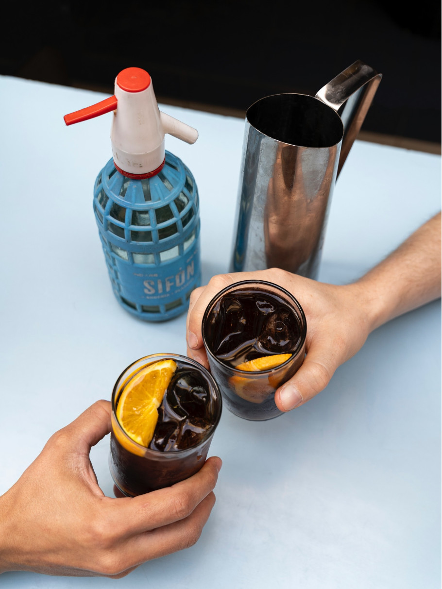 Además de la propuesta especial de parrilla, Sifón sostiene el estilo que lo hizo famoso: un ambiente relajado, mesas compartidas, vermuts, soda y una atmósfera que mezcla tradición con estética contemporánea.