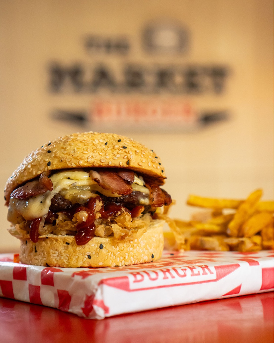 En pleno Mercado de San Telmo, The Market Burger logra algo difícil: unir la cultura porteña con el espíritu de un diner estadounidense. Su propuesta se destaca por la calidad de los productos, la ambientación cálida y el aroma irresistible que invade el mercado.