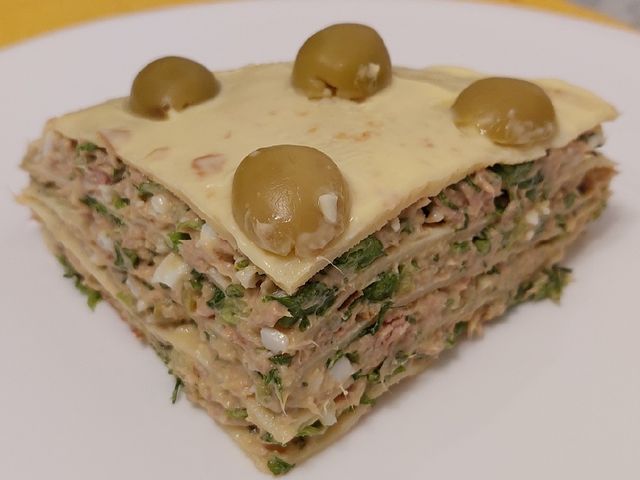 La torre de atún mantiene su estatus de estrella navideña. Capas de puré, atún, morrón, aceitunas y huevo duro arman un plato que no necesita horno y se prepara en pocos minutos.
