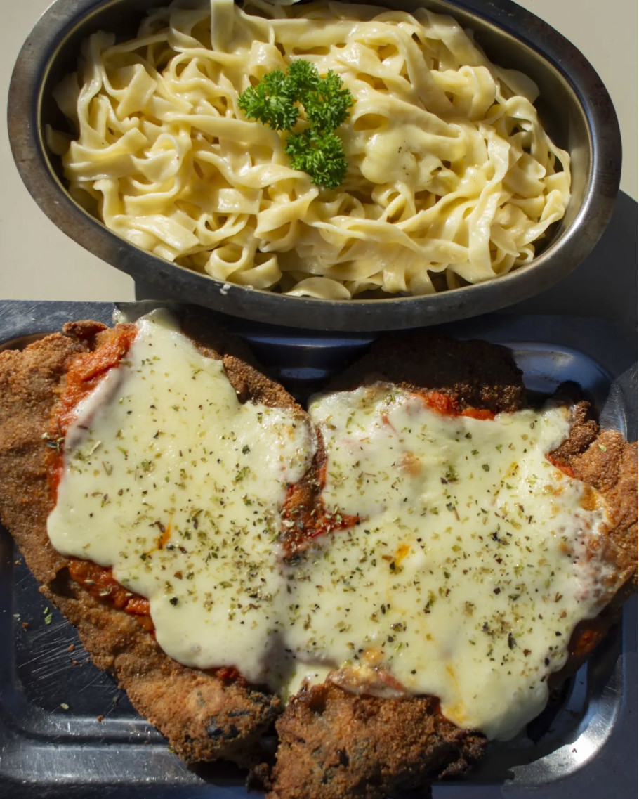 También hay clásicos bien de bodegón, como la carne al horno con papas y batatas, o los sorrentinos de roast beef con salsa pomodoro. Y si te gusta compartir, podés optar por la milanesa de ternera a la napolitana, la de berenjena ahumada (para los vegetarianos), la suprema de pollo a la fugazzeta o el matambre de cerdo a la napolitana, todas con guarnición a elección.