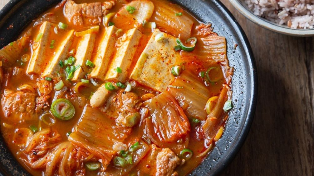 Desde Corea, el Kimchi jjigae suma cebollas verdes, ajo, tofu, hongos y una gran variedad de pimientos en un estofado reconfortante, pero muy picante. Ideal para quienes disfrutan del calor sostenido.