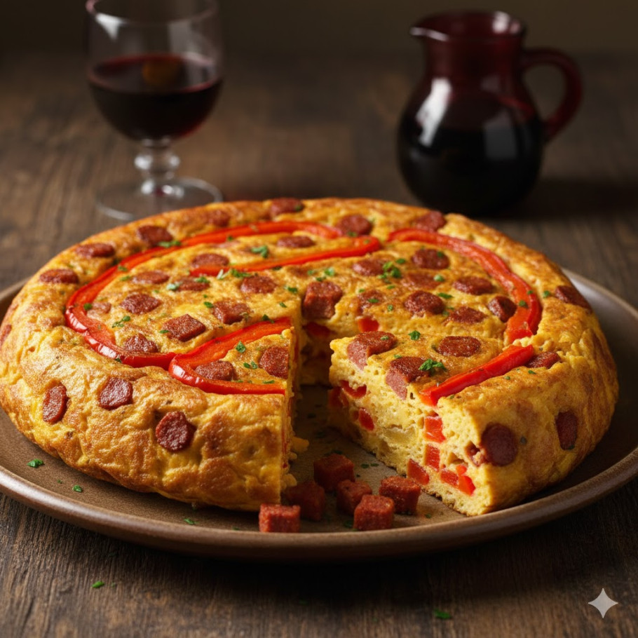 Sumar chorizo a la tortilla es apostar por potencia. Cortado en rodajas y previamente dorado, aporta ese toque especiado inconfundible que transforma cada bocado en una experiencia más intensa.